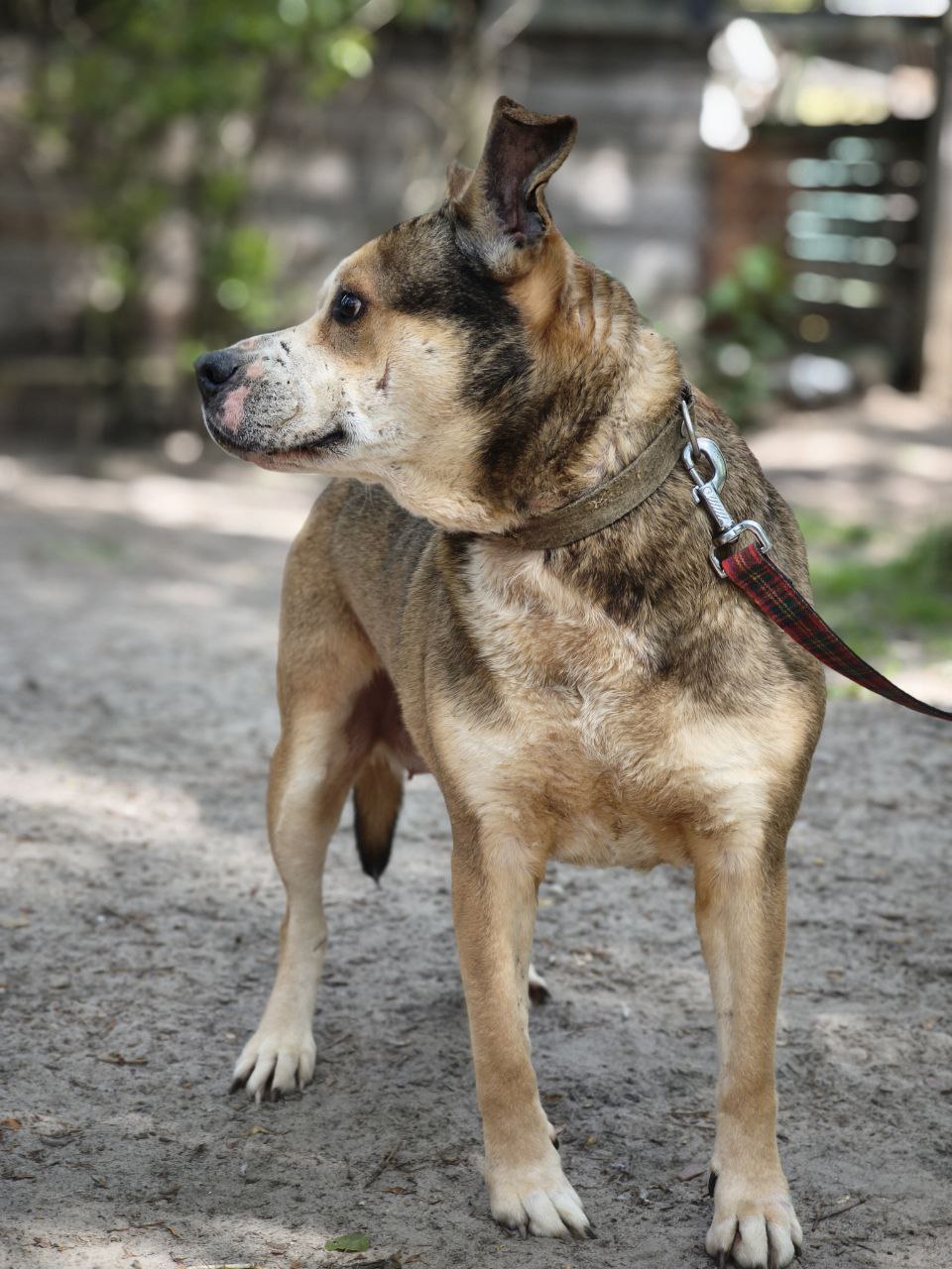 Знайомтесь — Челсі, неймовірна дівчинка породи стаффордширський тер’єр, їй 10 років. ⠀ Все життя вона була поруч з людьми. Любила. Захищала. Довіряла. А тепер — у притулку. Челсі не молода, і їй важко зрозуміти, чому раптом усе змінилося. Її погляд — це погляд собаки, яка вміє чекати. Але час іде... ⠀ Челсі — спокійна, вихована, дуже лагідна. Вона не потребує багато: лише м’яке місце, прогулянки поруч з людиною і відчуття, що вона — ще потрібна. ⠀ ❤️ Вона вміє слухати. Вміє любити тихо й глибоко. Це не собака для забави — це справжній друг, зрілий і мудрий.